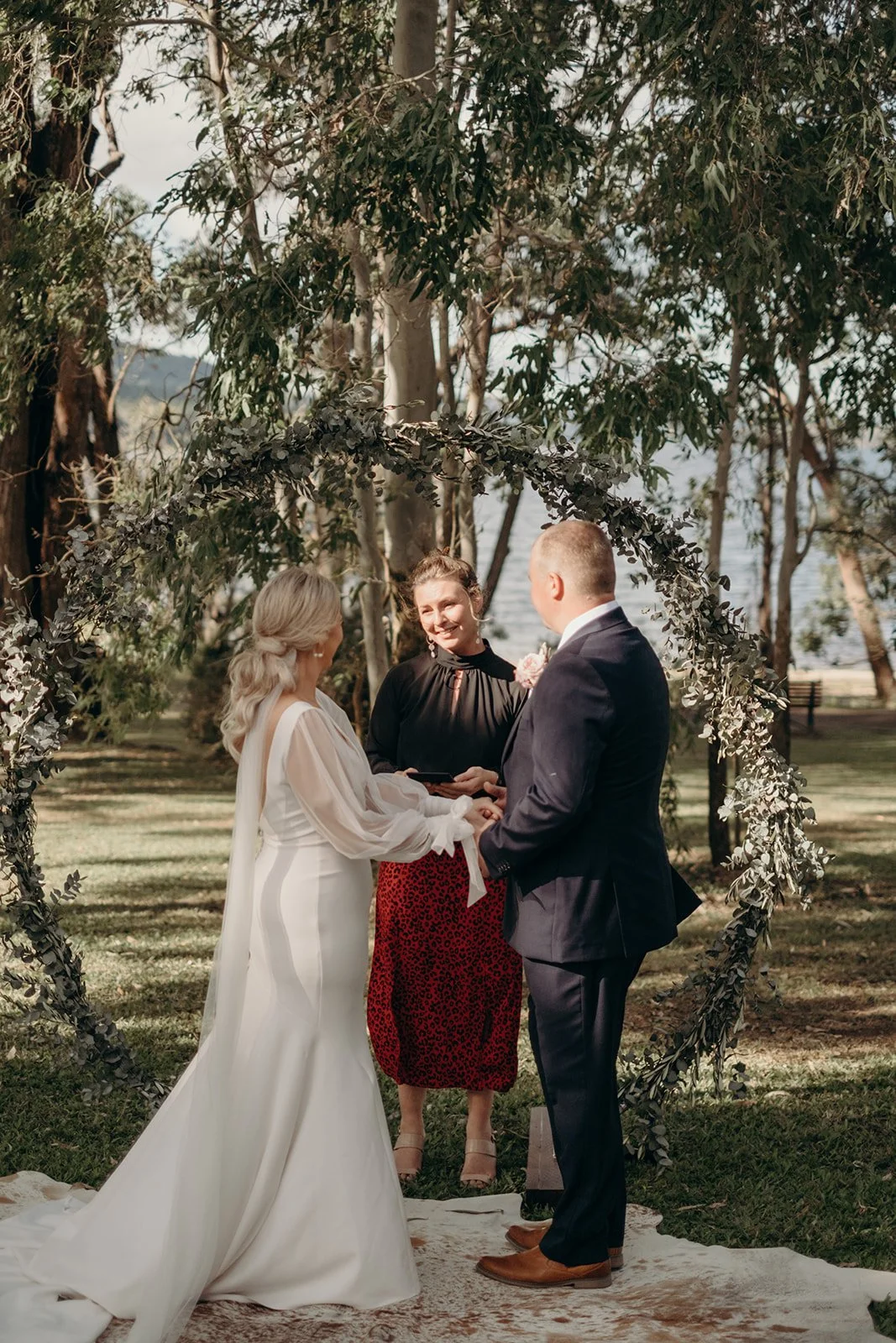 One of the most common sources of anxiety I have encountered in my couples is the not-knowing. Not knowing what to do at what time, worry about forgetting the exact sequence of events etc. Well, not only do we walk/talk through it the week of your wedding but also, I am there with you for all of those active parts of your ceremony. Right there, in whispering distance, keeping everything on track and reminding you of exactly what comes next so you don’t need to hold those details in your fizzed-up overloaded mind (full of good stuff). So, this is my final piece of advice for increasing the comfort during your ceremony: lean on me, bring me up there with you for all the action, put your trust in me to sort it out and pour your energy into the joy and beauty of these moments, rather than the organisation of them.